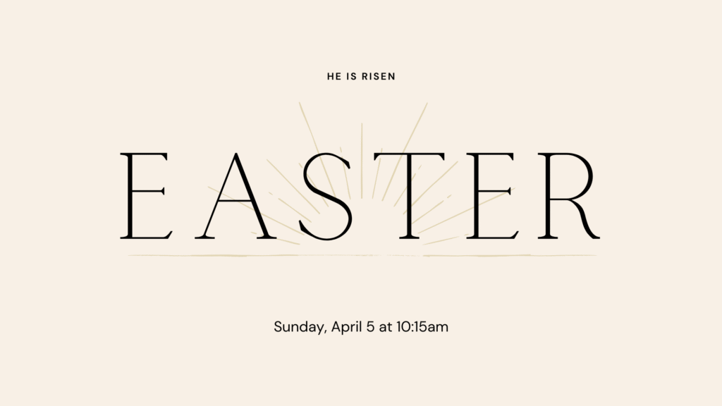 We’d love to see you and your crew this Easter Sunday at 10:15am. Join us as we share in the joy and hope of Jesus’ resurrection.